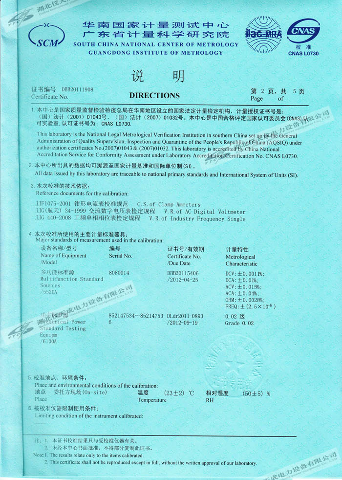 YTC2220鉗型相位伏安表的資質(zhì)證書